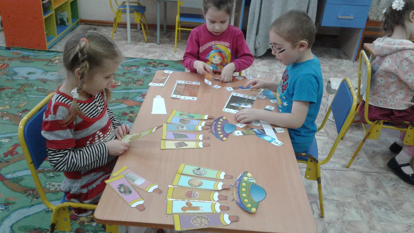 Дети достают из коробочки карточки, на которых нарисованы роли, которые они должны взять на себя.