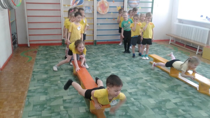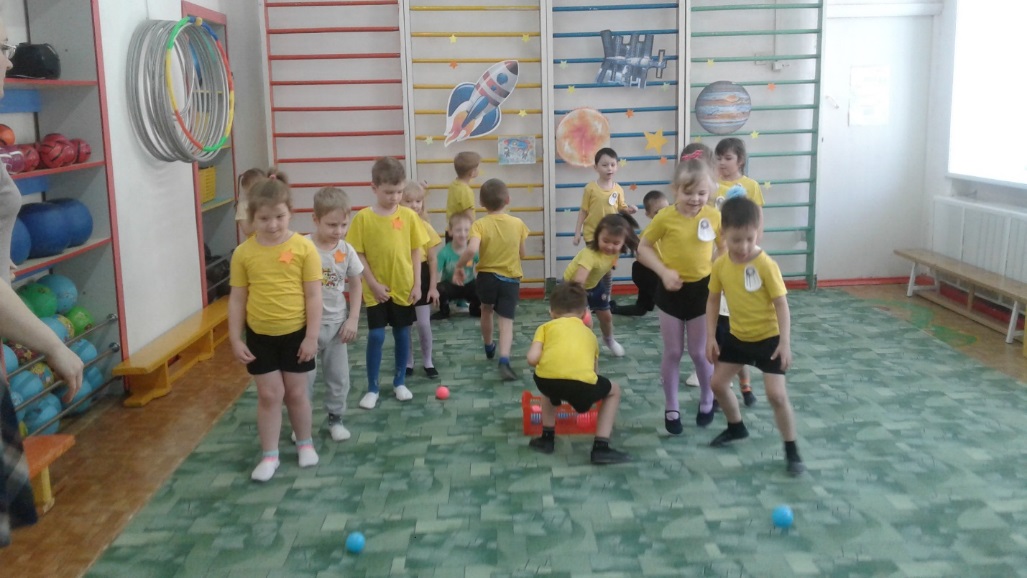 Дети стоят друг за другом «паровозиком», держась за талию друг друга. Кометы должны обойти препятствия и вернуться на свои места.