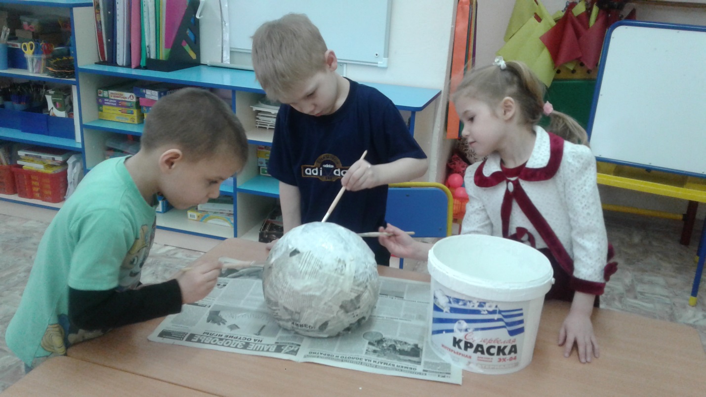 Изготовление шлемов космонавтов в группе совместно с детьми.