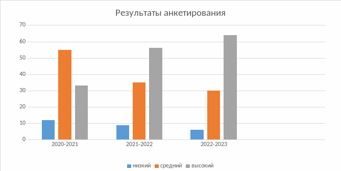 Низкий 12% Средний 55% Высокий 33% | Низкий 9% Средний 35% Высокий 56% | Низкий 6% Средний 30% Высокий 64% |