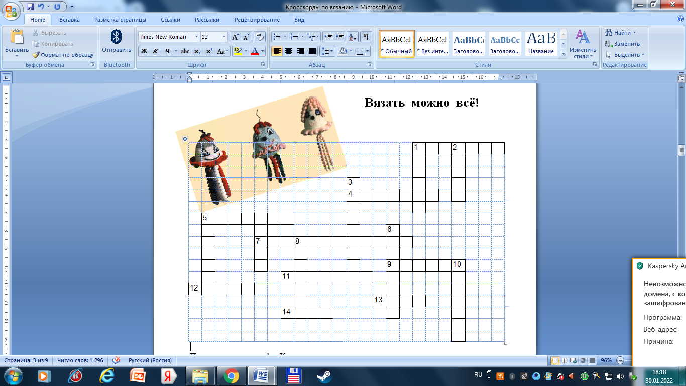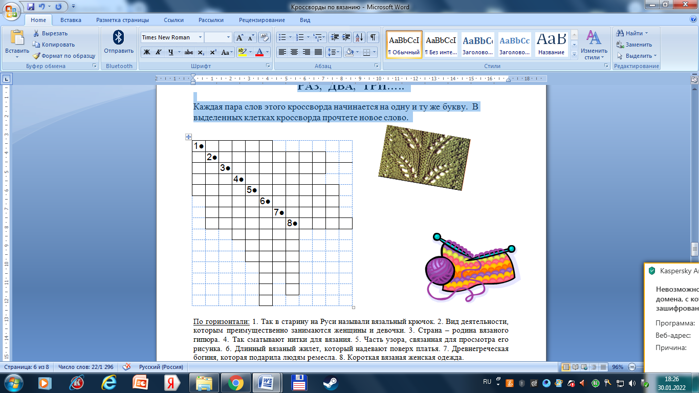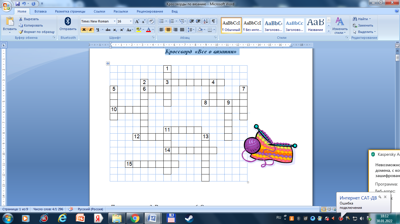 (Кроссворды на занятиях по обучению вязанию)
