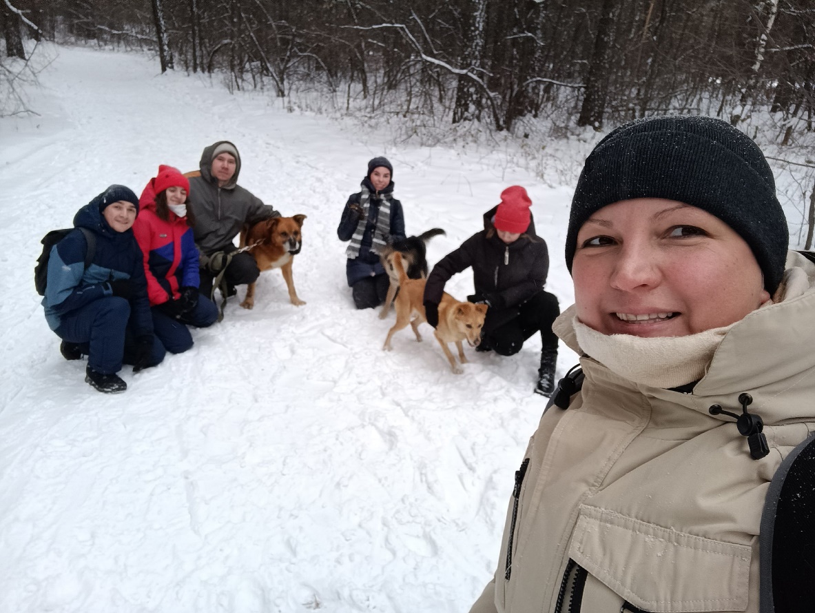 Волонтеры на прогулке с собаками из приюта: https://vk.com/sytyikotik?w=wall404065947_6368%2Fall Фото: