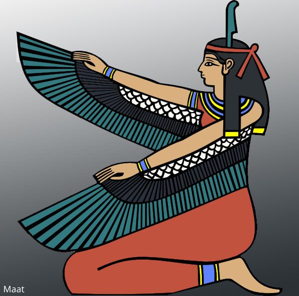 Маат ("страусиное перо"), в египетской мифологии богиня истины, правосудия и гармонии, дочь бога солнца Ра, участница сотворения мира, когда был уничтожен хаос и восстановлен порядок.