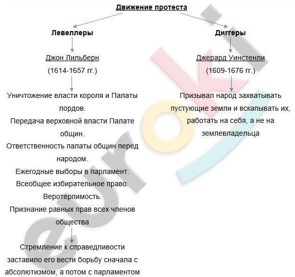 -Сегодня на уроке мы рассмотрим два наиболее известные из протестных движений - левеллеры (по-англ.- уравнители) и диггеры (по-англ.- копатели).