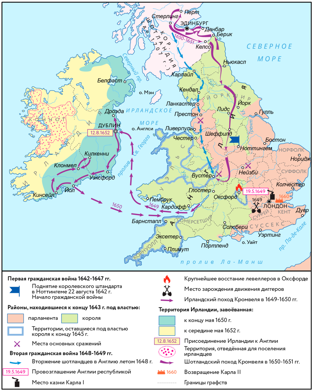 Основные даты: 1654-1658 гг. – протекторат Кромвеля, 1688-1689 – Славная революция, 1707 г. - уния Англии и Шотландии – Великобритания.