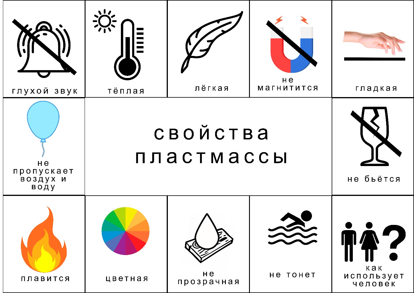 -А эти предметы что объединяет? (показывает на предметы из пластмассы). Они тоже сделаны из одного и тогго же материала. Кто знает, как он называется? (ответы детей).
