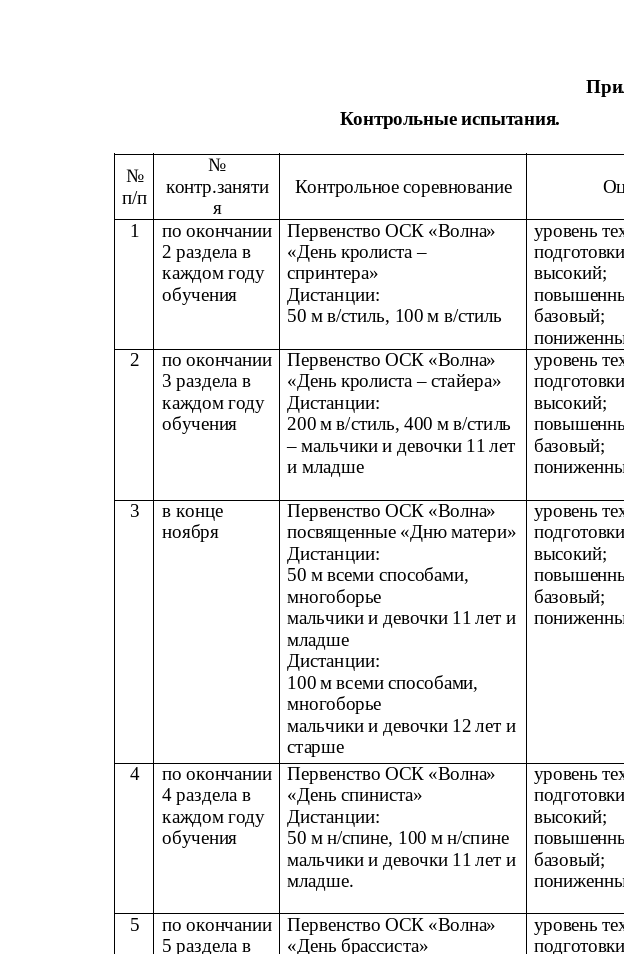 По окончании третьего раздела подготовки: проведение соревнований по плаванию Первенство ОСК «Волна» «День кролиста-стайера» - плаванием дистанций 200 м и 400 м вольным стилем.