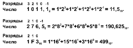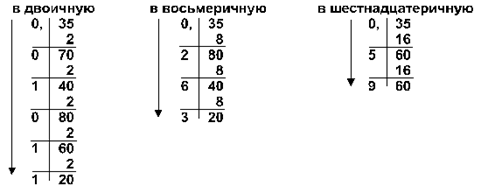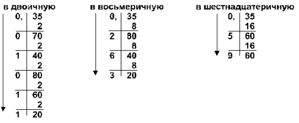 Задание. Переведите дробные десятичные числа в двоичную, восьмеричную и шестнадцатеричную системы счисления.