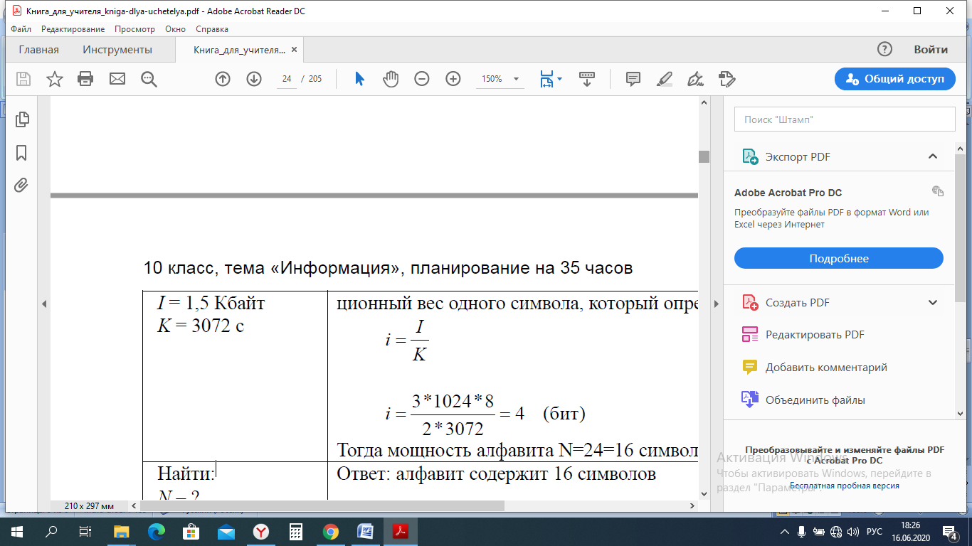 Найти: N − ? | Ответ: алфавит содержит 16 символов |