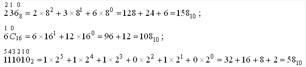 Задание. Переведите числа из двоичной, восьмеричной, шестнадцатеричной системы счисления в десятичную систему счисления.
