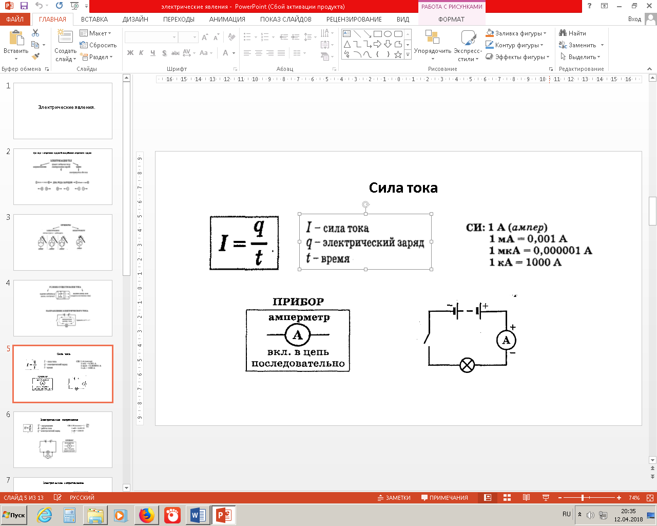 Повторения, н-р: электрические явления подраздел «Сила тока»