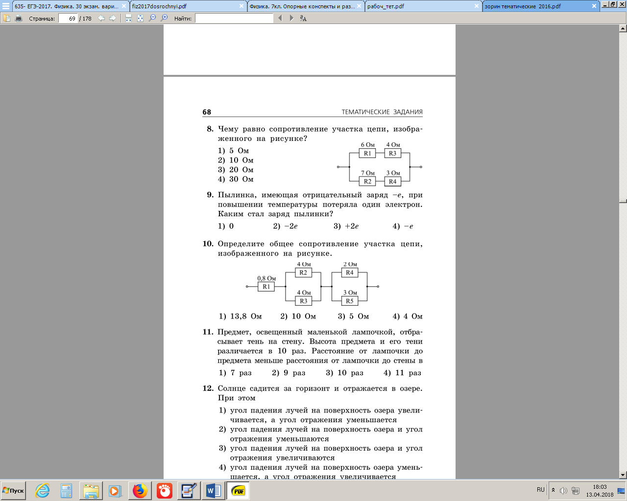 Решение задач начинается с простых, которые входят в состав части 1 основного государственного экзамена, например: Чему равно сопротивление цепи изображенной на рисунке.