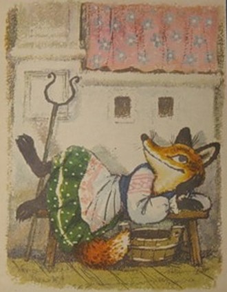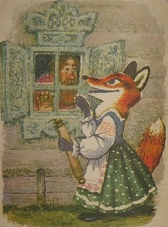 Пустили лисичку, улеглась она на лавочку, хвостик спрятала под лавочку, скалочку под печку убрала.