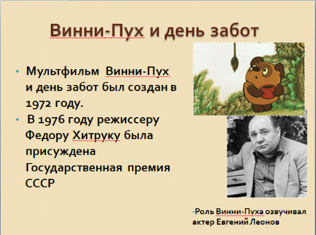 Оформить титульный слайд по образцу, поместив на него картинку из файла Винни1.jpg