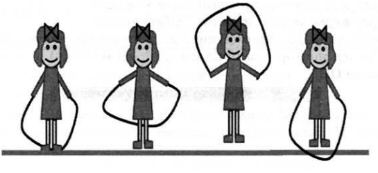 Добавьте в презентацию еще три копии слайда с изображением девочки. Внесите в изображение изменения, соответствующие основным фазам прыжка через скакалку. Это может выглядеть примерно следующим образом: