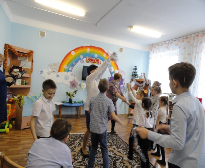 Ведущий. Предлагаю игру «Снежинка». Встаем в круг. У меня снежинка. Передаем ее друг другу и описываем, какая она. Постарайтесь не повторяться. (снежинка – белая, пушистая, искристая, колючая, прозрачная, многоугольная и т.д.)
