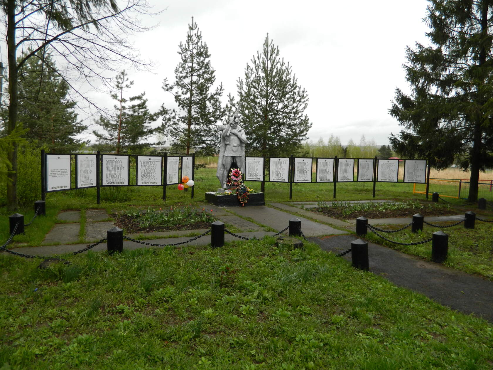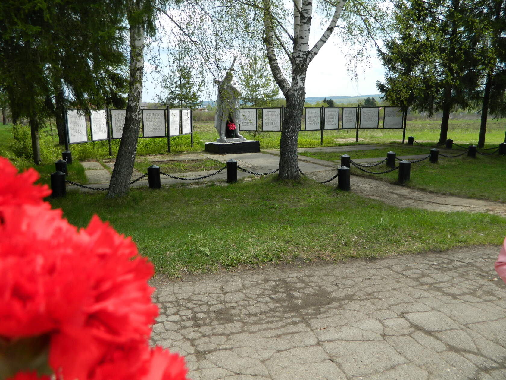 Памятное место ограничено с севера пришкольной площадкой, с востока и юга – приусадебными участками, с запада – подъездной дорогой к школе.
