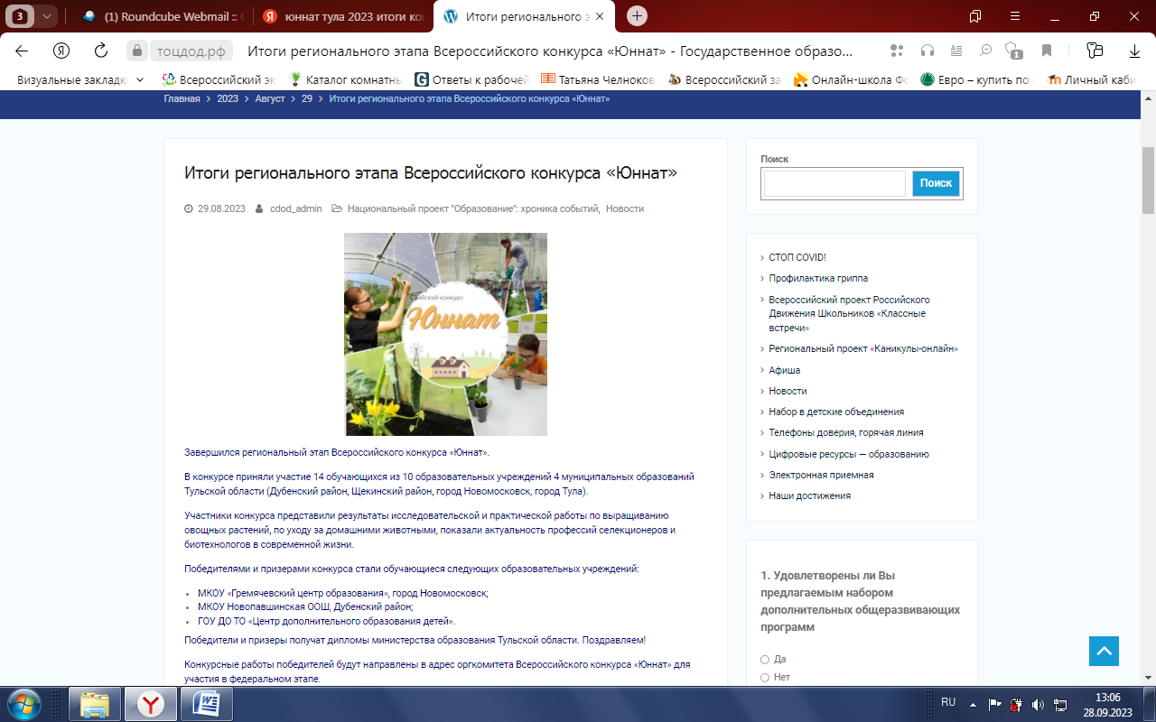 Рисунок6. Оценка проекта на региональном этапе Всероссийского конкурса «Юннат»
