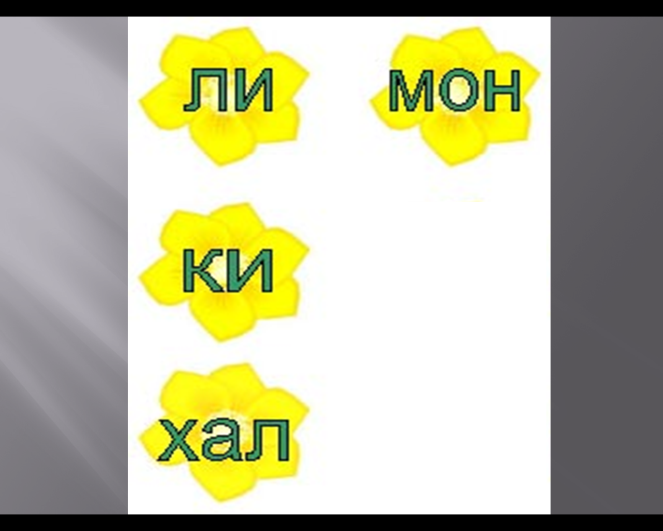Какие слова мы составили из слогов? (лимон, кино, халва)