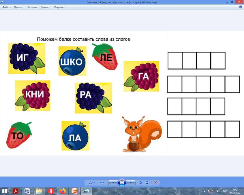 Цель. Развитие умения подбирать слова с заданным количеством слогов, опираясь на гласные.