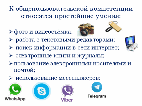 владеть навыками использования информационных устройств: компьютера, телевизора, магнитофона, телефона, мобильного телефона, пейджера, факса, принтера, модема, копира;