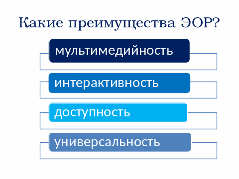 ЭОР как средство обучения обладают рядом характеристик, обуславливающих их преимущества по сравнению с традиционными средствами обучения: