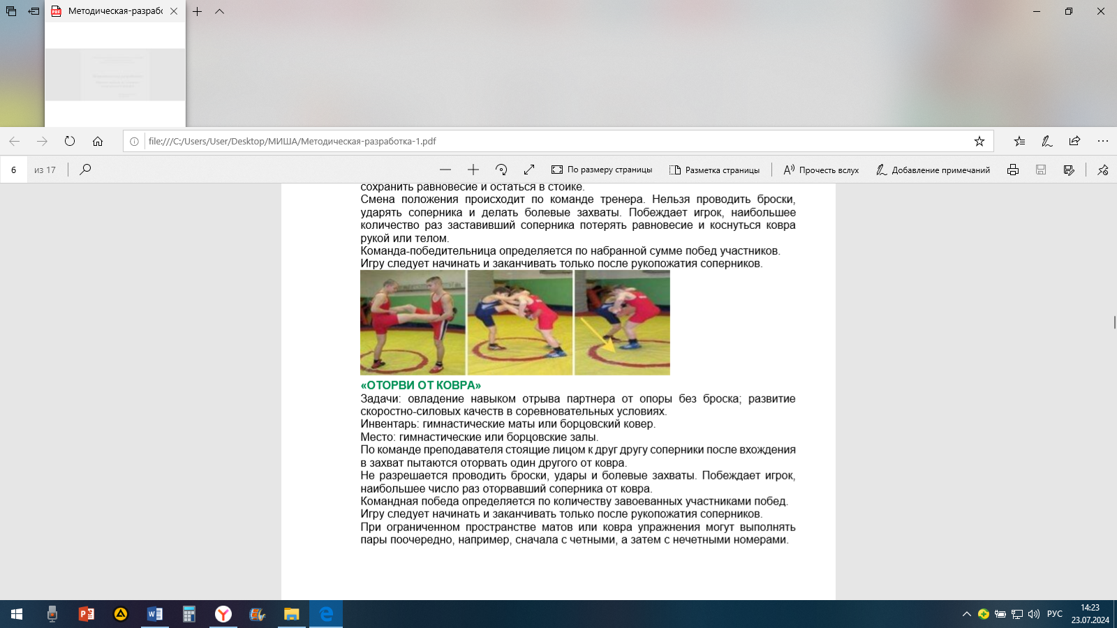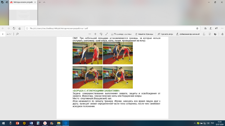 Игровые задания №1 (при освоении учебного материала по греко-римской борьбе).