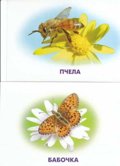 Воспитатель:Ребята,на столах у вас картинки с изображением насекомых.Вам нужно по очереди подойти со своей картинкой, назвать насекомое и сказать, что оно умеет делать (летать, порхать, жужжать, пить нектар, махать крылышками, прыгать).