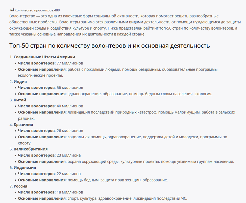 Таким образом, география волонтерства разнообразна и охватывает как развитые, так и развивающиеся страны. Объединяет всех этих волонтеров одно – желание сделать мир лучше, внести свой вклад в общее благо и помочь тем, кто в этом нуждается.