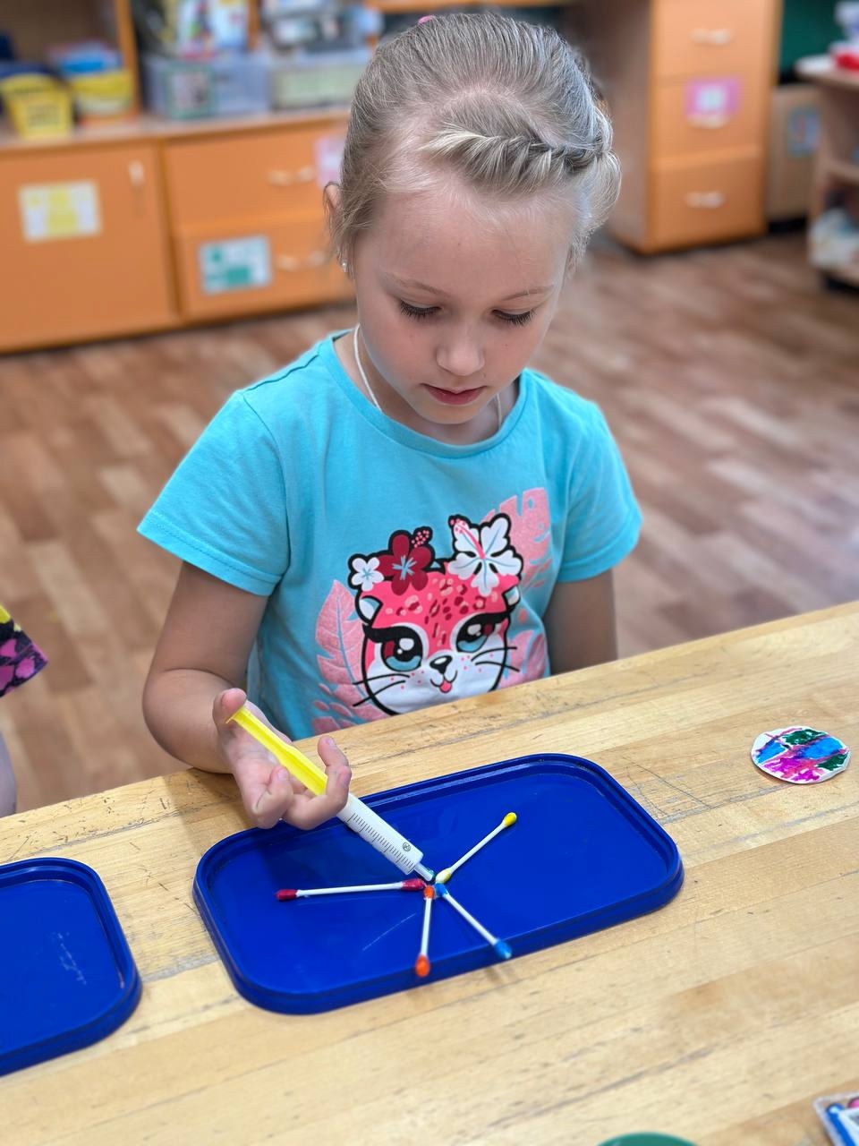 Пипеткой набираем окрашенное молоко и начинаем «волшебство»