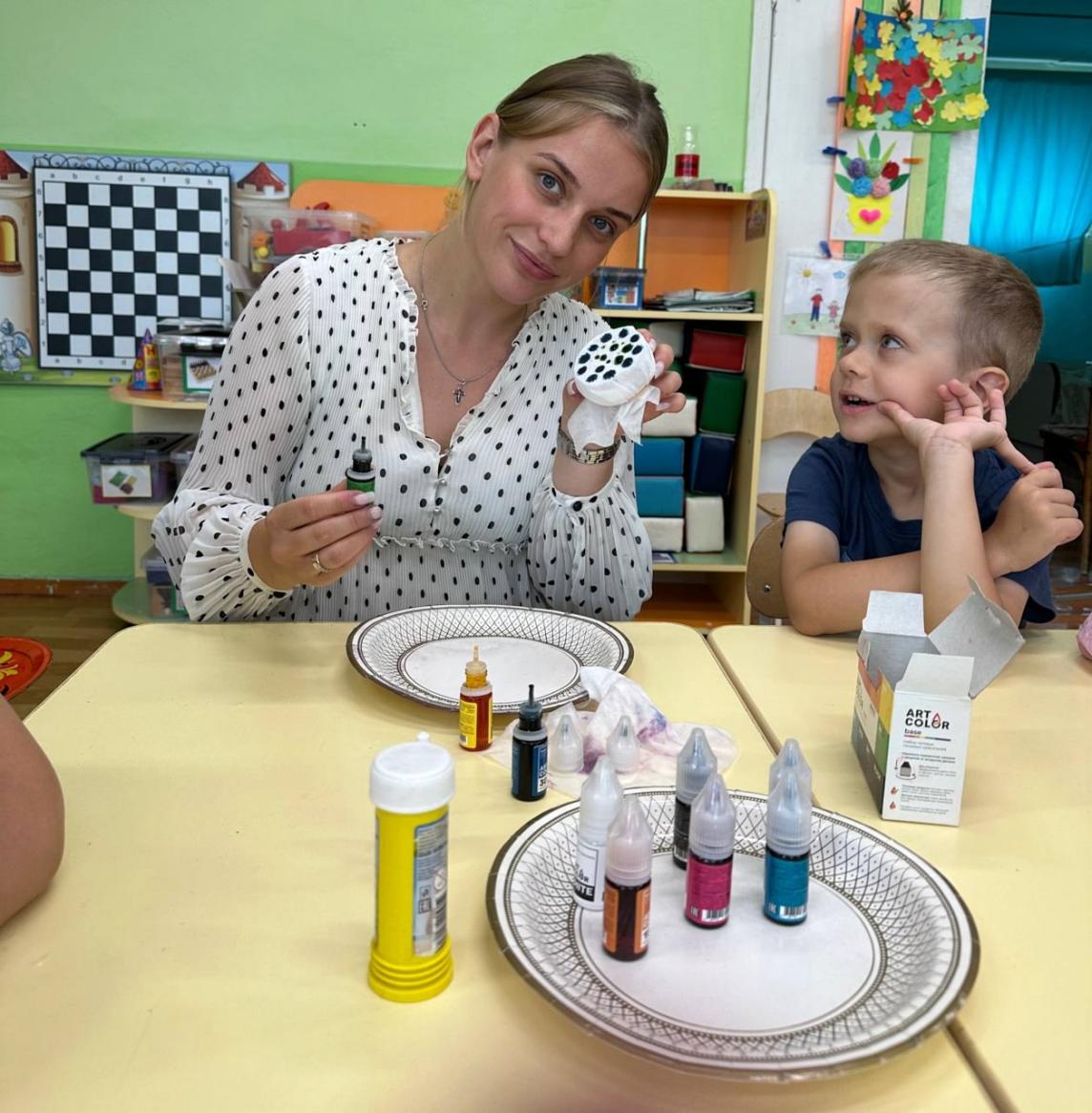 Материалы: пластиковые кружечки, небольшие прозрачные контейнеры (по количеству детей), тазики небольшие для крахмала (1 на 2 ребёнка), большие прозрачные контейнеры для воды (1 на 2 ребёнка), крахмал и вода (2:1), небольшие мячики-попрыгунчики, игрушечные животные (по количеству детей), влажные салфетки (по количеству детей) и одноразовые полотенца.