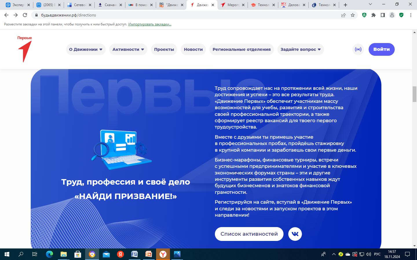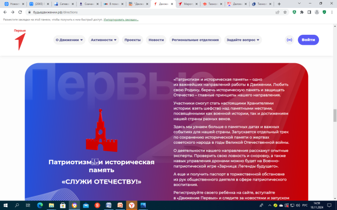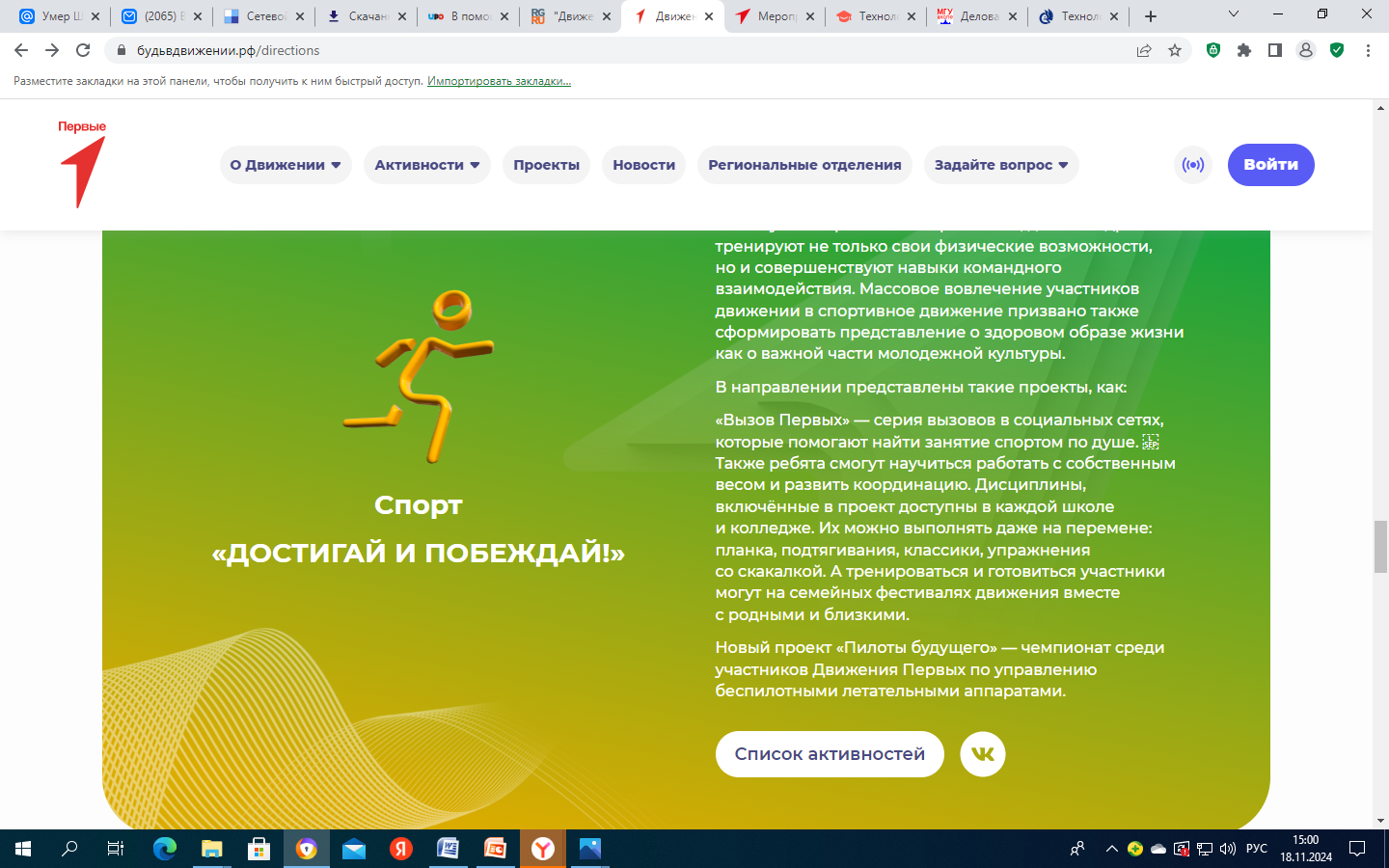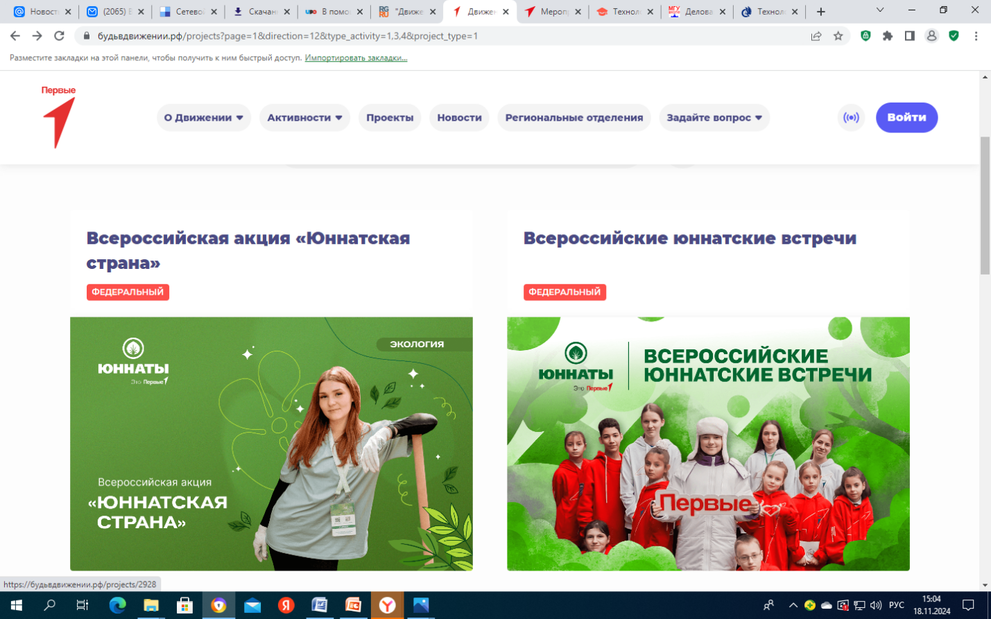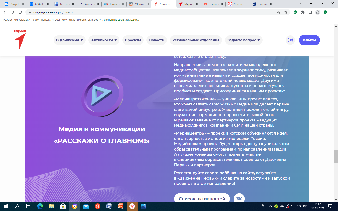 С 2022 года в нашей стране существует Движение “Первых” – это общественная организация, которая помогает развивать лидерские качества и социальные навыки у детей и молодёжи, по средством приобщения их к участию в различных проектах и инициативах.