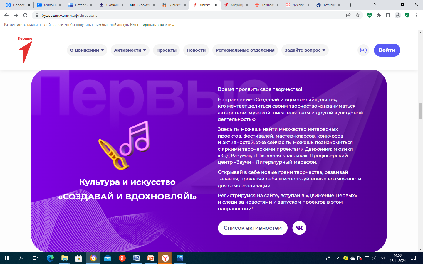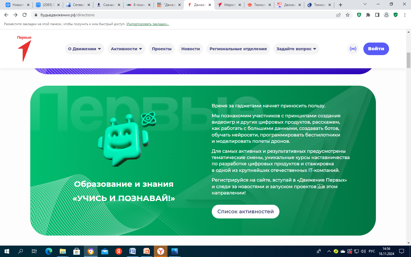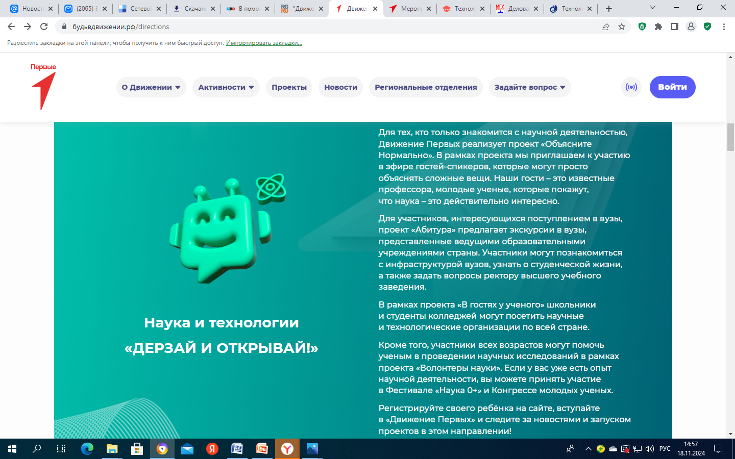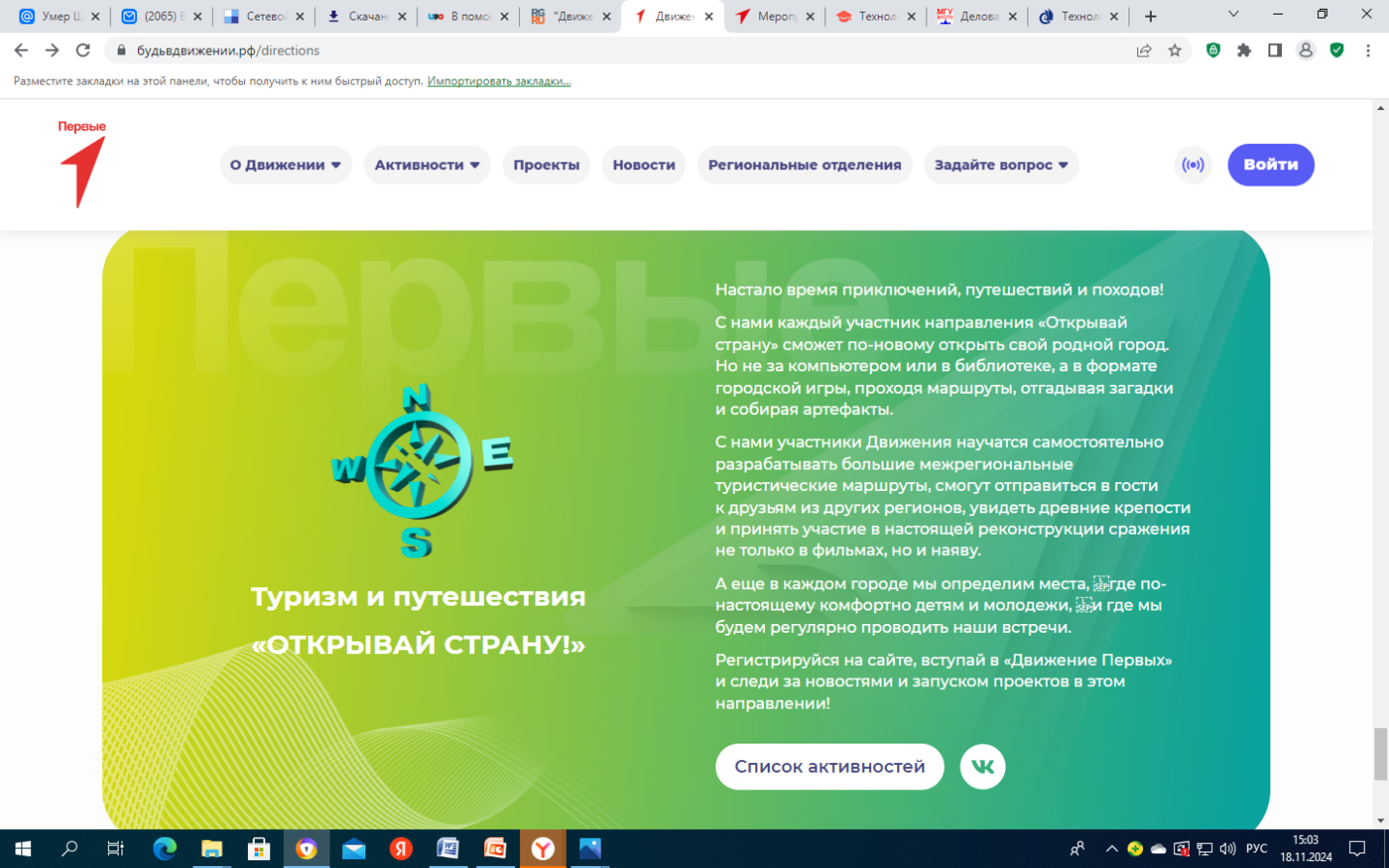 С 2022 года в нашей стране существует Движение “Первых” – это общественная организация, которая помогает развивать лидерские качества и социальные навыки у детей и молодёжи, по средством приобщения их к участию в различных проектах и инициативах.