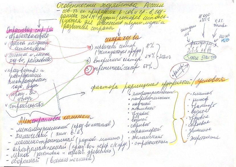 В теме «Особенности хозяйства России» ученики знакомятся с отраслевым и межотраслевым составом хозяйства страны, секторами экономики, а также с наличием факторов и условий размещений предприятий по стране.