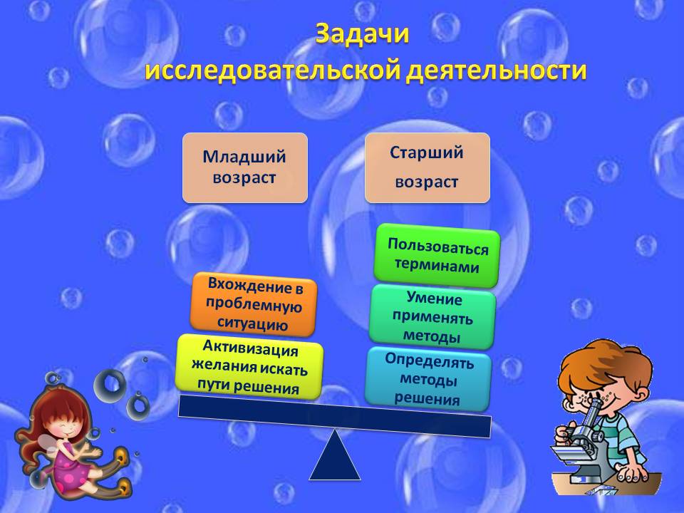 – в старшем дошкольном возрасте, как видите, задачи более весомые: мы развиваем умение определять возможные методы решения проблемы, как с помощью взрослого, так и затем самостоятельно; формируем умения применять данные методы, использовать различные варианты и развиваем желание пользоваться терминологией.