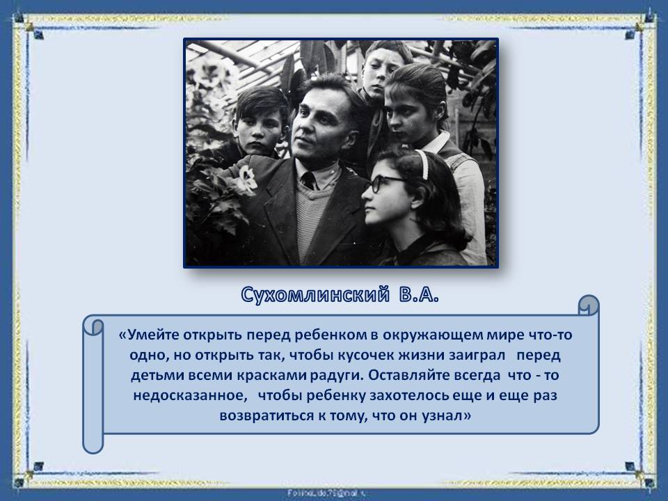 Уважаемые коллеги! Свое выступление хочу закончить словами Василия Александровича Сухомлинского: «Умейте открыть перед ребенком в окружающем мире что-то одно, но открыть так, чтобы кусочек жизни заиграл перед детьми всеми красками радуги. Оставляйте всегда что-то недосказанное, чтобы ребенку захотелось еще и еще раз возвратиться к тому, что он узнал».