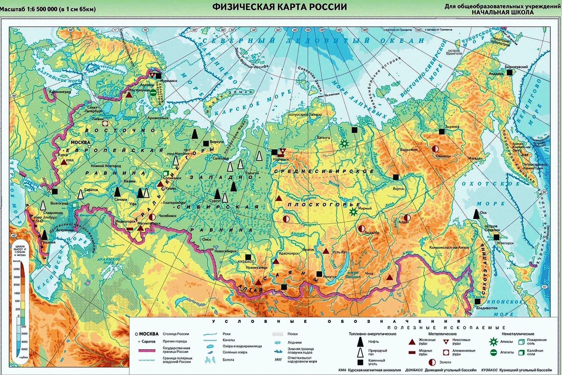 Ребята давайте подойдём к нашей карте. Вы сегодня были такие молодцы, поделитесь вашими впечатлениями о путешествии (ответы детей)…. Мы сегодня отобрали образцы и провели с ними опыты. Вы много мне рассказали про полезные ископаемые. Назовите их (уголь, мел, глина, песок). Эти полезные ископаемые добывают в России. На карте они обозначаются значками.