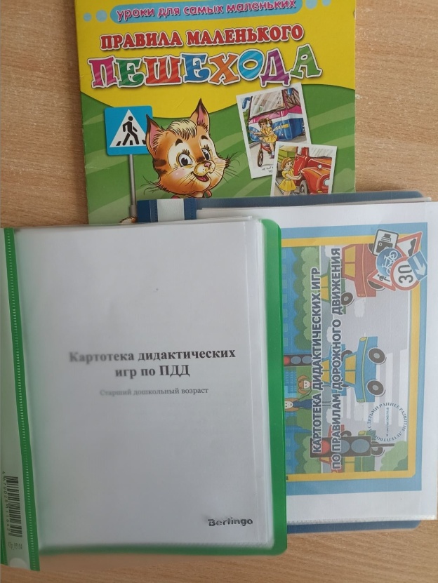 В группе много настольных игр, которые сделаны руками детей совместно с родителями. В играх и развлечениях дети легко и быстро запоминают то, что может показаться им скучным и неинтересным. Чтобы повысить интерес к дорожной азбуке, для детей проводились конкурсы, викторины, соревнования, развлечение «Азбука улиц и дорог». Очень много используется на занятии и в свободное от занятий время художественной литературы: чтение книги О. Тарутина «Для чего нам светофор?», отрывок из книги Дорохова «Зеленый, желтый, красный», стихотворение Михалкова «Моя улица» и др.