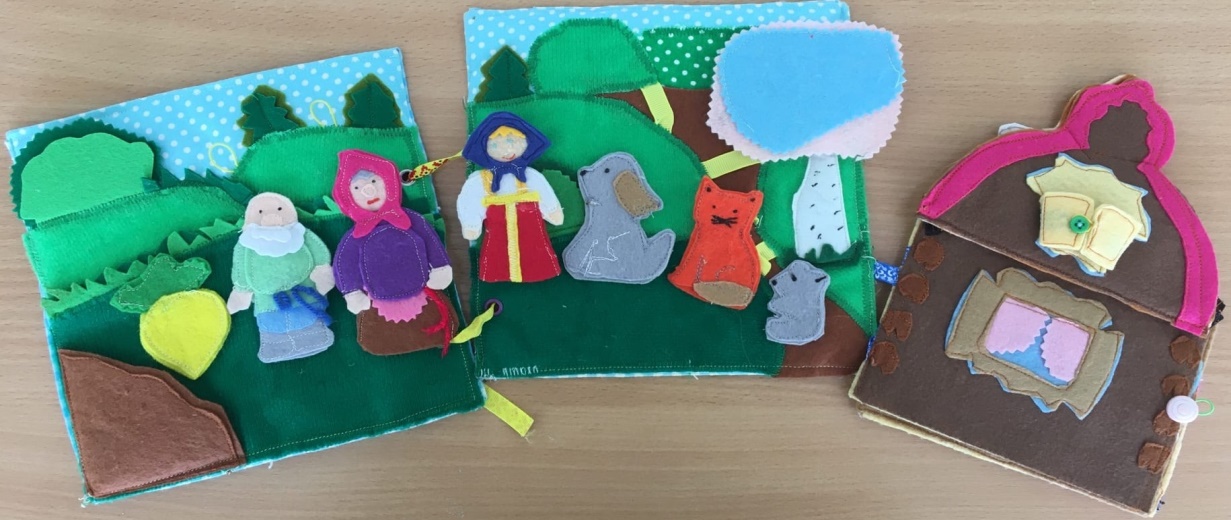 Работать с пособием легко и удобно, оно мягкое, безопасное, мобильное. Дети легко могут самостоятельно играть, рассматривать, щупать, манипулировать персонажами, сочинять новые истории, сказки и игры, перемещая своих героев на страничках.