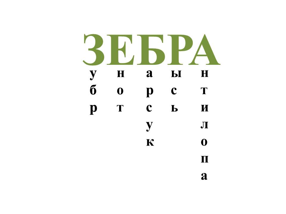 Другой вариант этой игры. Любое слово пишется на доске. Ребятам дается задание: к каждой букве слова придумать слова на заданную тему (животные, транспорт, растения и др.).