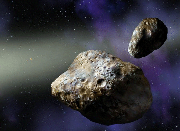 (таблички со словами: комета, спутник, планеты, Солнце, звёзды, астероид, метеорит)
