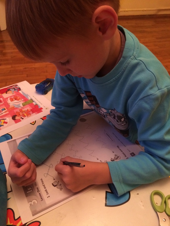 Для развития письменной речи, правильного каллиграфического почерка детям с нарушением интеллекта я даю дополнительные задания на обведение букв или проведение линий. Размер букв в таких заданиях значительно больше, чем в сборниках упражнений и в обычных тетрадях в клеточку.