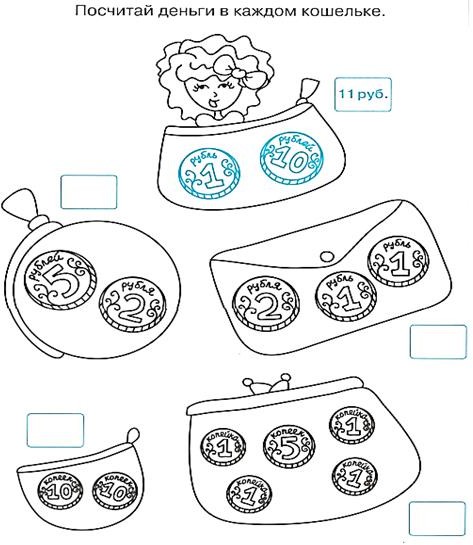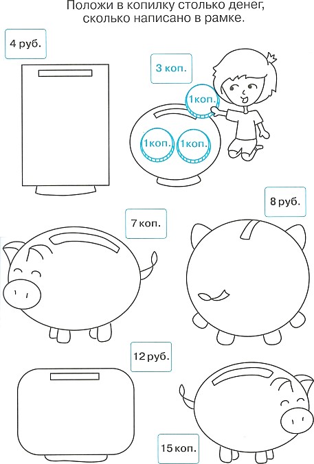 Каждый предмет стоит 1 рубль. Под каждой карточкой напиши суммукоторуюнужнозаплатить.