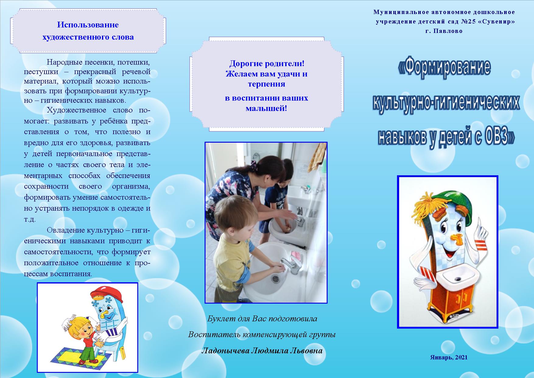 10.05.2021 Памятка для родителей "Формирование культурно-гигиенических навыков у детей с ОВЗ" Принять участие в этом конкурсе Описание конкурса Список всех конкурсов Ладонычева Людмила Львовна МАДОУ детский сад №25 г. Павлово Конкурсная работа Свидетельство участника экспертного совета жюри Свидетельство можно заказать сразу, как Вы оставите не менее 3 объективных комментариев в этом разделе сайта. Узнать подробнее Памятка для родителей "Игры для развития детей с расстройствами аутистического спектра" Проектная работа по итогам реализации работы с детьми с ОВЗ. У вас недостаточно прав для добавления комментариев.Чтобы оставлять комментарии, вам необходимо авторизоваться на сайте. Если у вас еще нет учетной записи на нашем сайте, предлагаем зарегистрироваться. Это займет не более 5 минут.