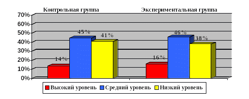 В экспериментальной группе на высоком уровне сформированность коммуникативной компетенции продемонстрировали 8 учеников - (31%); на среднем уровне 14 учеников - (54%); 4 ученика - (15%) на низком уровне.