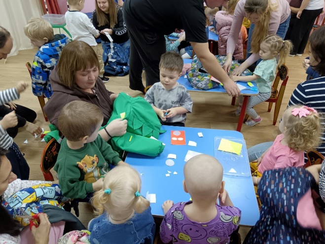 · Родители помогают детям украсить куртки, приклеивая на них декоративные фликеры.