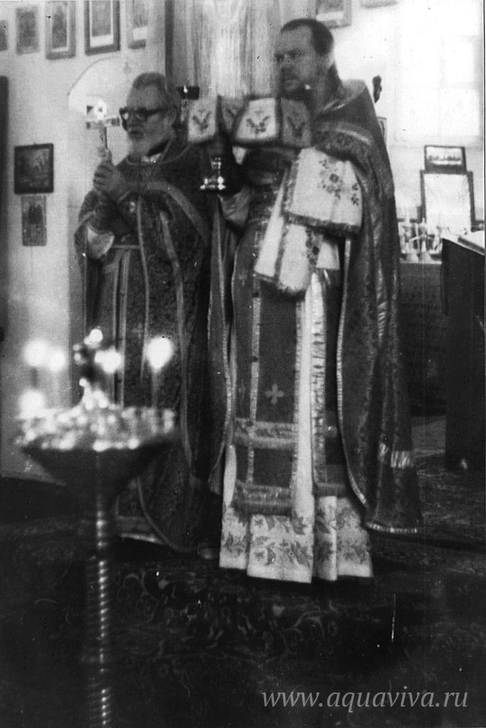 На фотографии отец Иоанн (слева) и архимандрит Гурий (бывший ученик отца Иоанна) во время службы в с. Ополье. Первая половина 90-х годов