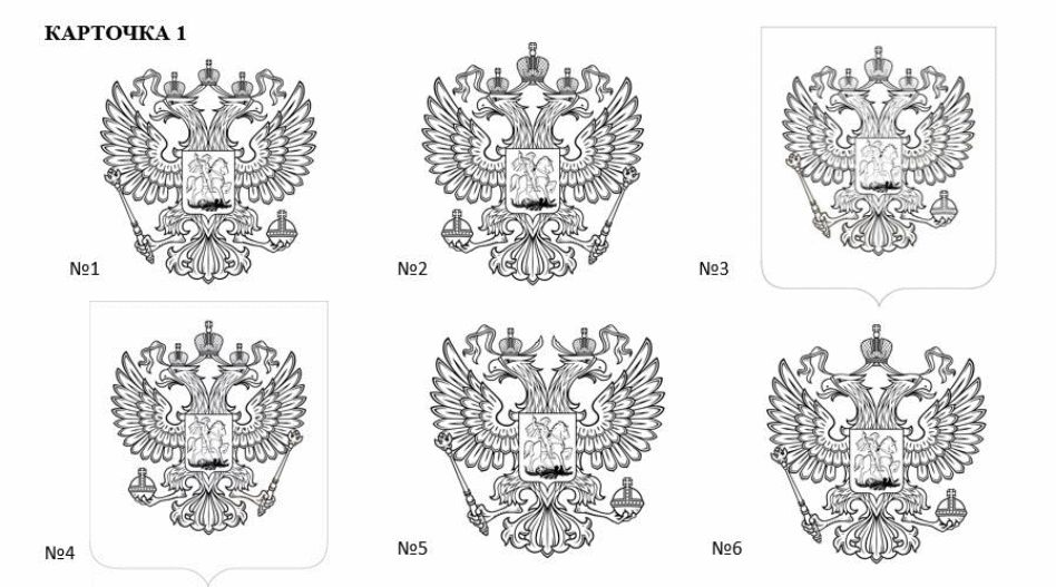 1.КаждаягруппаполучаеттекстФедеральногоконституционного закона«ОгосударственномгербеРоссийскойФедерации»икарточкис изображениямигерба,полностью или частично соответствующие закону.
