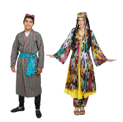 оловные уборы у мужчин-тюбетейки, чалмы; у женщин-платки. Традиционная обувь - кожаные сапожки на мягкой подошве. Девушки заплетали волосы в мелкие косички (до 40), остальные женщины – в две косы.