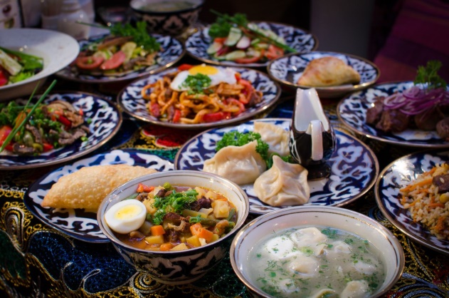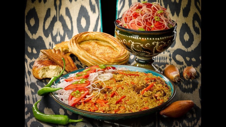 Пища узбеков состоит из молочных и мясных продуктов. Важное место занимает хлеб в виде лепёшек. Любимое блюдо - плов. Употребляют в пищу фрукты, орехи. Главный напиток-зелёный чай.